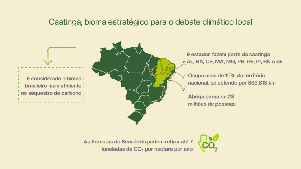 Cientistas demonstram que as florestas do Semiárido brasileiro podem retirar até sete toneladas de CO₂ por hectare por ano, consolidando-se como o bioma brasileiro mais eficiente no sequestro de carbono. Mesmo as regiões mais áridas da Caatinga são capazes de absorver entre 1,5 e três toneladas anuais de gás carbônico.