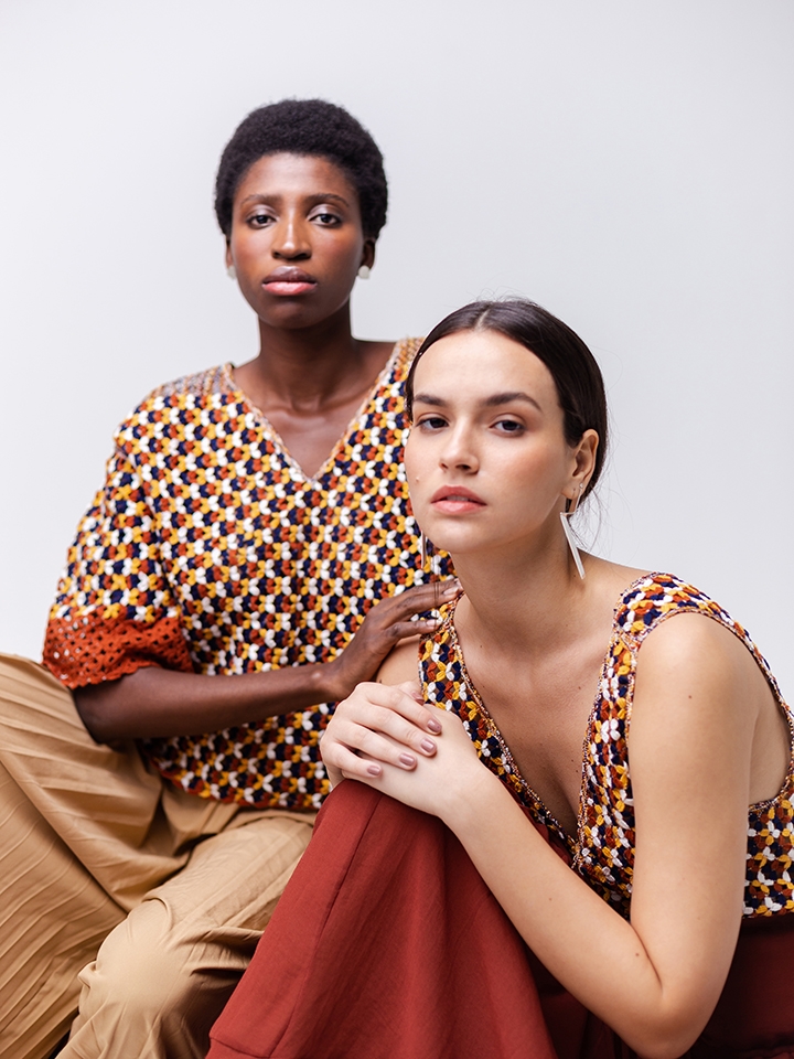 Oficinas, rodas de conversas, trocas de saberes, estudos e muito trabalho resultaram na criação de novas matrizes para as tramas da renda (também conhecidas como “papelão”). Daí nasceu uma coleção exclusiva de peças feitas pelas mãos das rendeiras, com designers desenvolvidos pela marca Catarina Mina, priorizando peças modernas e que ao mesmo tempo resgatam a antiga tradição. A coleção foi toda produzida durante o período de pandemia, respeitando todas as medidas de segurança para evitar o contágio por Covid-19.