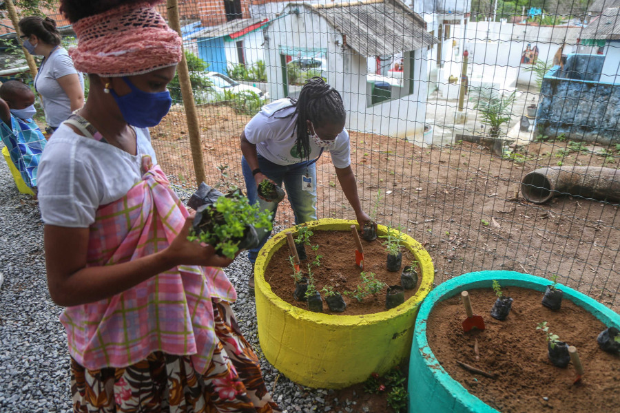 Entre hortaliças para consumo gastronômico e folhas utilizadas em cultos de religiões de matriz africana, as mudas disponíveis no plantio incluem manjericão, alfazema, alecrim, lavanda e hortelã | Fotos: Bruno Concha/Secom